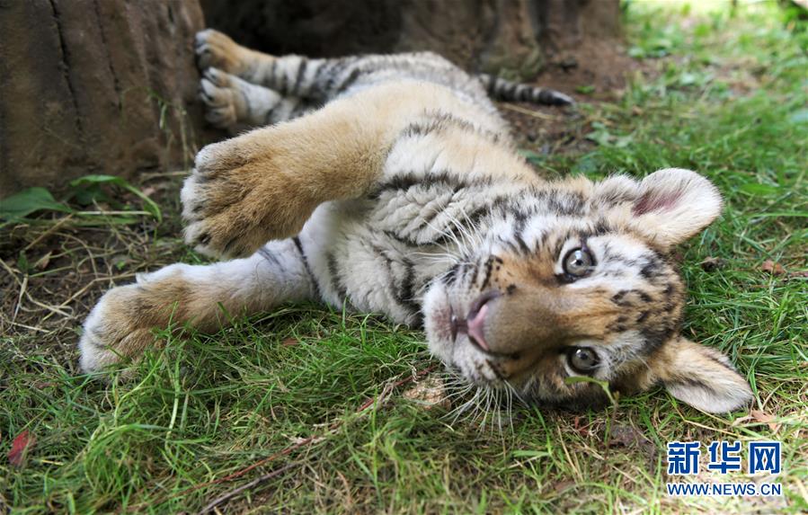 Filhotes de tigre siberiano brincam no parque em Hailin, Heilongjiang