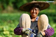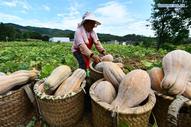Agricultores estavam ocupados na colheita de abóboras em um campo do distrito de Sinan, na cidade de Tongren, província de Guizhou, no dia 12 de agosto de 2020. Nos últimos anos, o local encontrou um novo modo de desenvolver a agricultura, desempenhando o papel de empresas orientadas, cooperativas e agricultores. Essa forma ajudou os aldeões a aumentarem sua renda.
