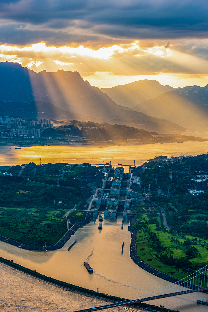 Cenário do pôr do sol nas Três Gargantas em Yichang, província Hubei