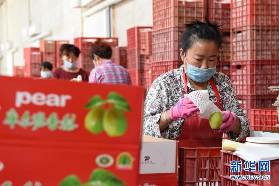 Um agricultor verifica o crescimento de peras perfumadas na Aldeia Awat em Korla, na Região Autônoma Uigur de Xinjiang, noroeste da China. Cobrindo uma área de 455 mil mu (cerca de 30.333 hectares), o cultivo de pereiras deve render mais de 500 mil toneladas de peras perfumadas na cidade de Korla este ano. Até o momento, Korla recebeu encomendas de 121.300 toneladas de peras.