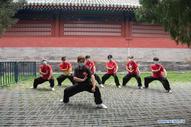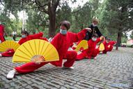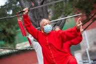 Idosos praticam aeróbica tradicional no parque Templo do Céu em Beijing