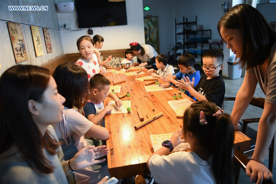 Turistas aproveitam as férias em uma casa de família na vila de Fangshan, da cidade de Huzhou, província de Zhejiang, leste da China, no dia 27 de agosto de 2020. Aproveitando os recursos ecológicos, os moradores da vila aumentaram sua renda desenvolvendo a indústria de hospedagem domiciliar.