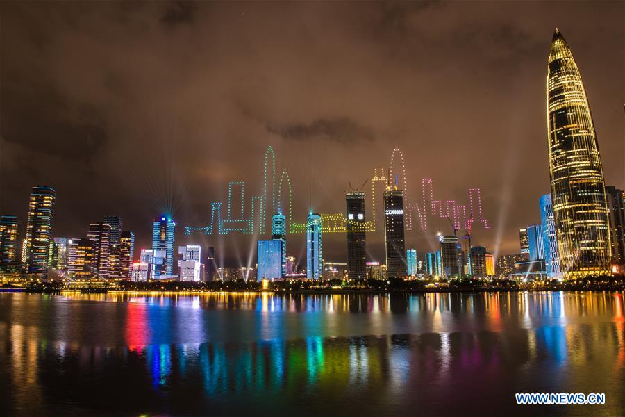 Um show de luzes foi realizado em Shenzhen para comemorar o 40º aniversário do estabelecimento da Zona Econômica Especial de Shenzhen.