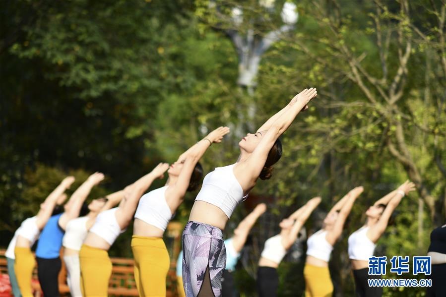 Pessoas praticam yoga ao ar livre na província de Guizhou