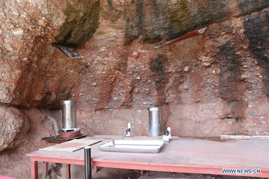 Xu Peng, especialista em conservação de relíquias culturais, verifica um sensor de inclinação que ajuda a proteger esculturas de argila dentro de uma caverna das Grutas da Montanha Maiji, em Tianshui, província de Gansu, no noroeste da China, no dia 6 de setembro de 2020. Contabilizando 221 cavernas, as Grutas Maiji contêm mais de 10 mil esculturas de argila feitas há 1.600 anos. A conservação nas grutas começou na década de 1980 e foi reforçada por tecnologias modernas como a Internet das Coisas e sensores.