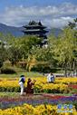 Pessoas apreciam um dia ensolarado do outono em Beijing