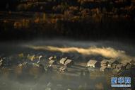 Paisagem de outono da vila Hemu em Xinjiang