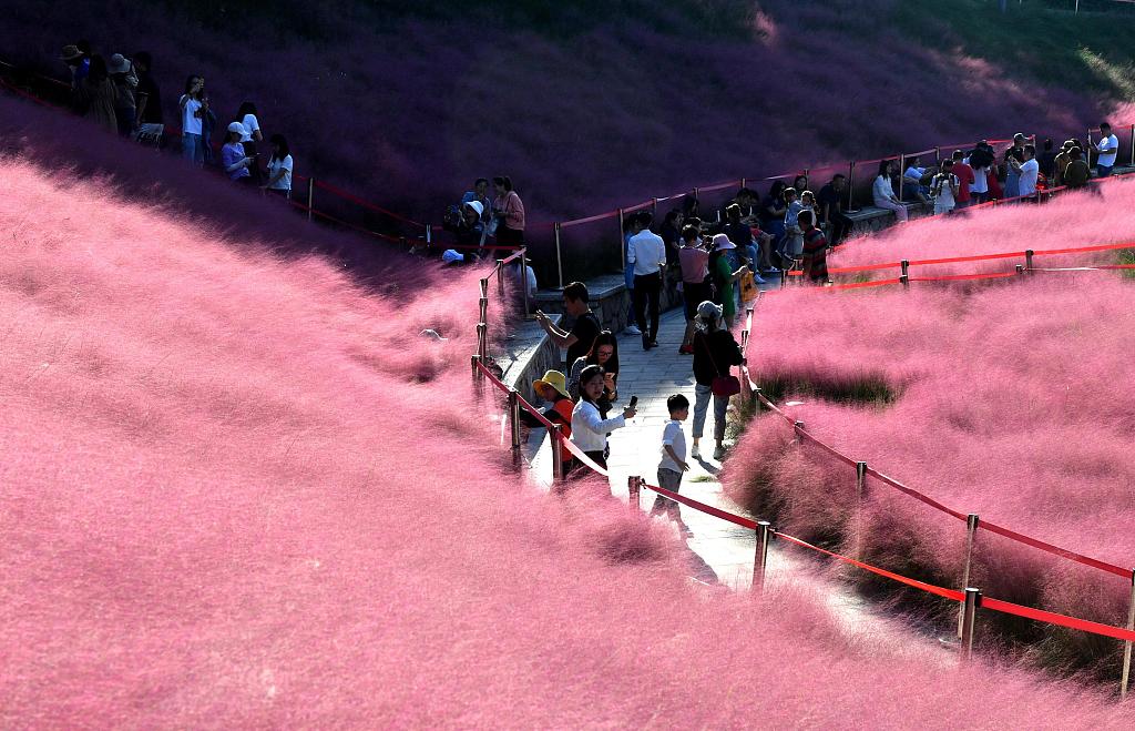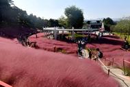Parque coberto de gramas cor de rosa atrai mais turistas em Fuzhou