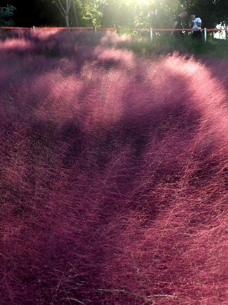 Parque coberto de gramas cor de rosa atrai mais turistas em Fuzhou