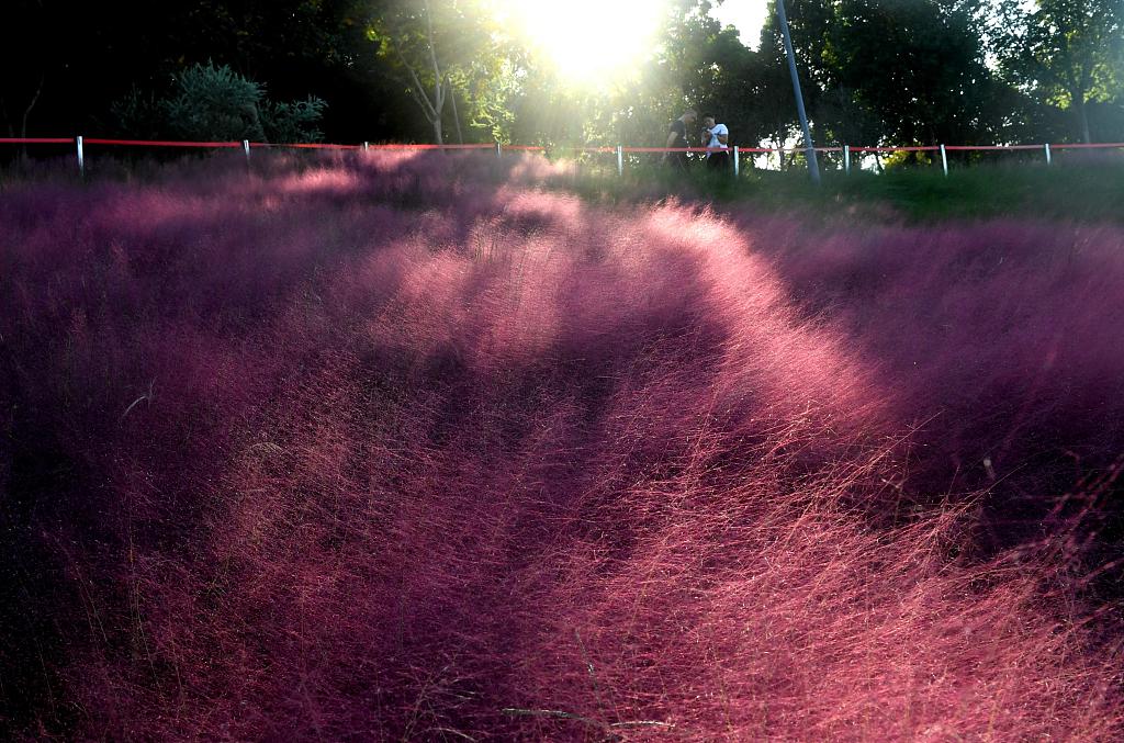 Parque coberto de gramas cor de rosa atrai mais turistas em Fuzhou