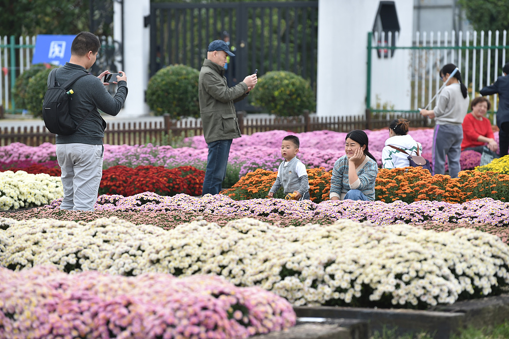 Crisântemos de cores variadas estão florescendo em Nanjing