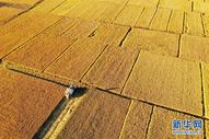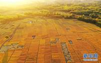 Agricultores colhem arroz na vila de Jiangzhuang, de Luanzhou, província de Hebei, norte da China.