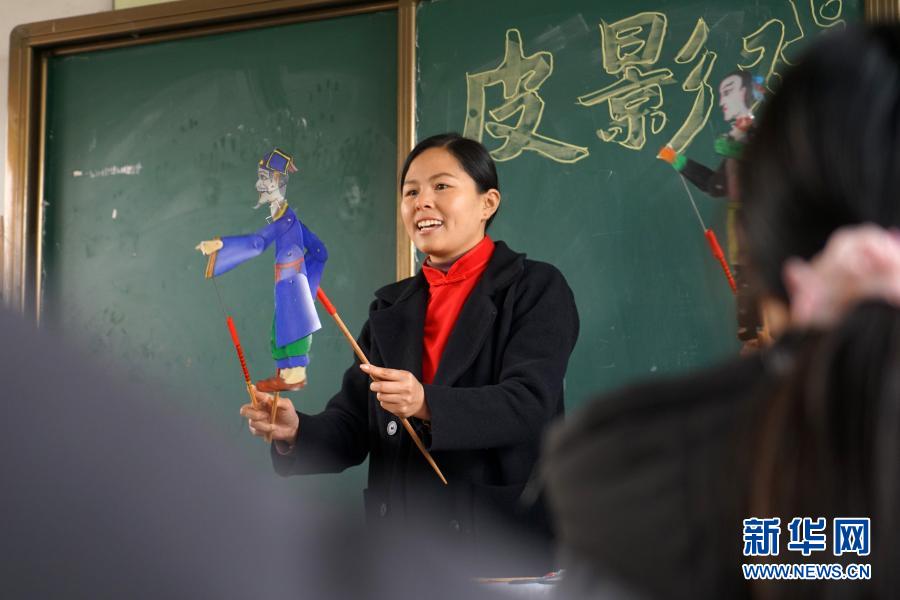 Alunos experimentam teatro de sombras em escola primária de Hebei