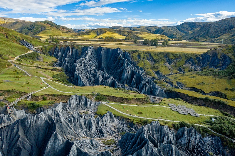 A magnífica pradaria, os pântanos suaves, o mar de flores no planalto e as imponentes florestas de pedra de cor verde-escura... Esta não é uma cena de efeitos especiais em algum filme de ficção científica, é a Área Cênica do Parque Moshi, na província de Sichuan, sudoeste da China.