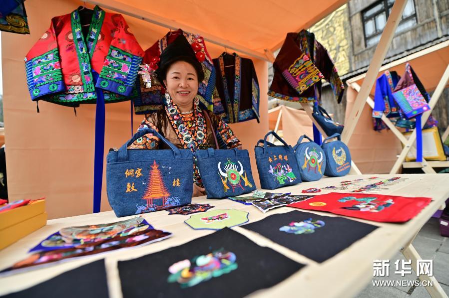 Uma feira de artesanato realizada no distrito de Congjiang, na província de Guizhou, no sudoeste da China. Os produtos e obras são todos elaborados por habitantes locais, com o objetivo de promover o alívio da pobreza na região. (Xinhua/Wu Dejun)