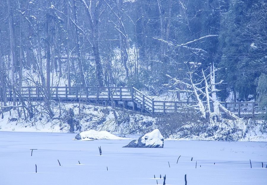 Paisagem de inverno de Parque Nacional da Floresta de Longchi, província de Sichuan