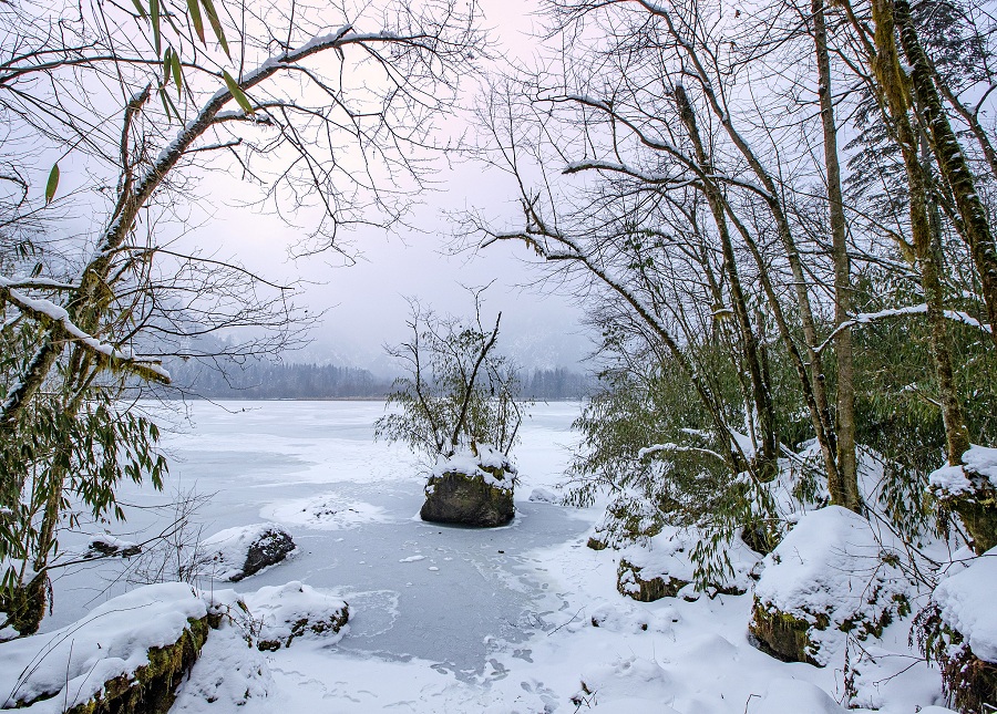 Paisagem de inverno de Parque Nacional da Floresta de Longchi, província de Sichuan