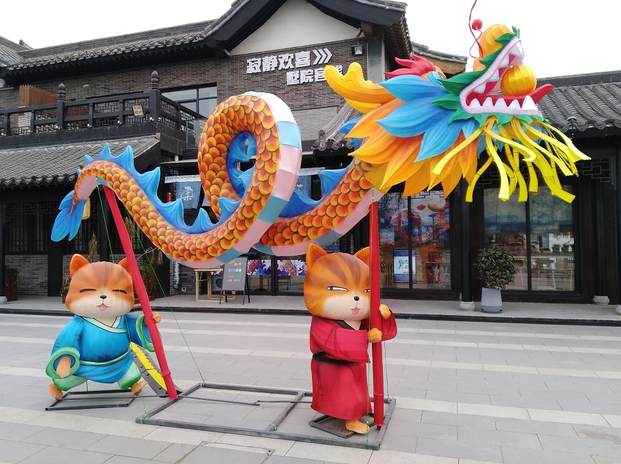 Lanternas em forma de gatos decoradas nas ruas de Kaifeng