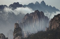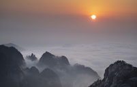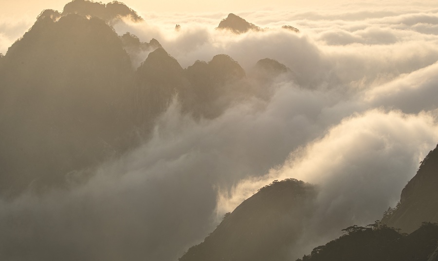 Vista do mar de nuvens na montanha Huangshan na província de Anhui