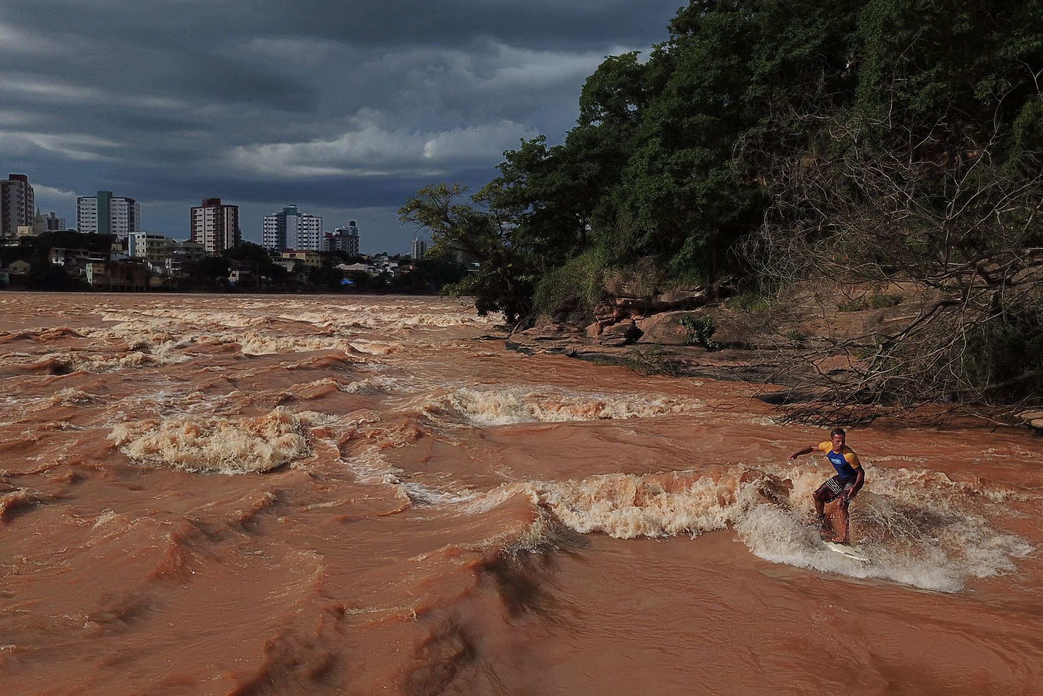 Em 9 de janeiro de 2021, na cidade de Governador Valadares, o surfista Paulo Guido surfa no rio Doce. Com a chegada da estação das chuvas em Minas Gerais, o nível das águas do rio subiu, atraindo os surfistas que não têm praias para mostrar suas habilidades.