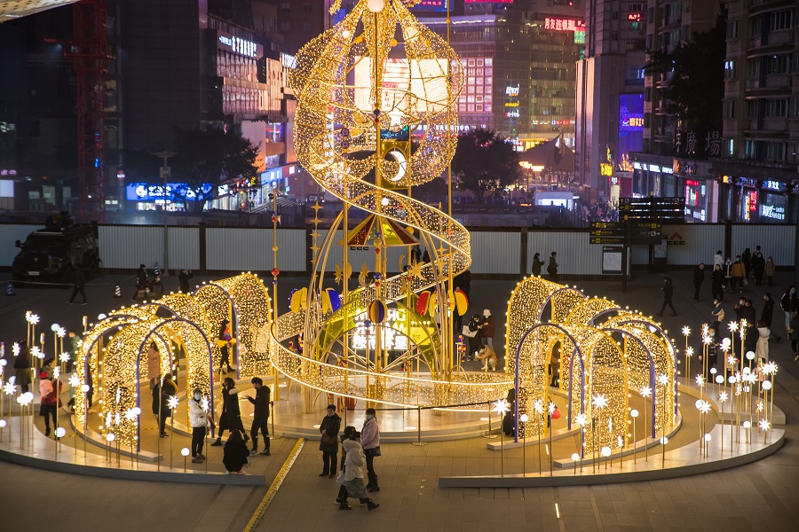 Luzes anunciam a chegada do próximo Festival da Primavera em Chongqing
