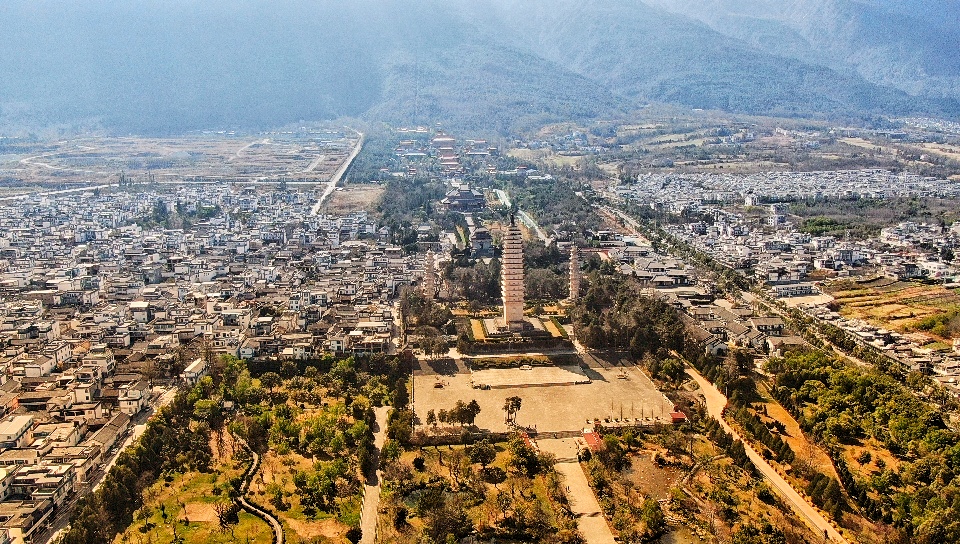 Os três pagodes do templo de Chongsheng de Dali foram construidos entre os séculos 7 e 10. O pagode principal tem 16 andares com 60 metros de altura.