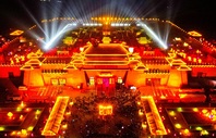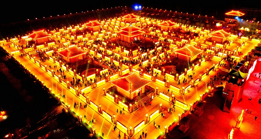 Lanternas do Rio Amarelo de Jiuqu iluminam a cidade de Zhangye