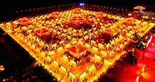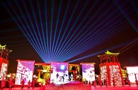 Sendo um evento histórico e cultural originado na Dinastia Shang (C.1600–1046BC), as lanternas do Rio Amarelo de Jiuqu (“Jiuqu Yellow River Light Array” em inglês) iluminam a cidade de Zhangye, Província de Gansu, a 23 de fevereiro.