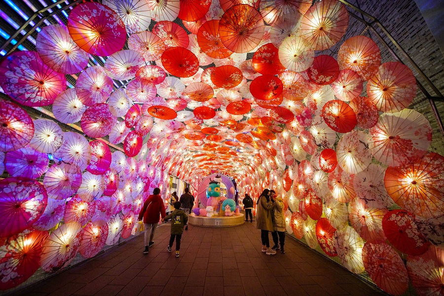 Milhares de lanternas de guarda-chuva decoram as ruas de Hangzhou, capital da província de Zhejiang, atraindo muitos visitantes. A bela cena cria uma forte atmosfera festiva para acolher o Festival das Lanternas que é comemorado no 15º dia do primeiro mês do calendário lunar chinês.