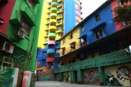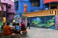 Paredes exteriores de um bairro residencial em Chongqing foram decoradas com pinturas coloridas que atraem muitos visitantes.