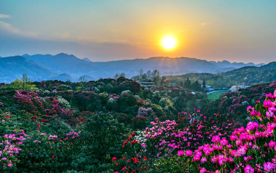 Flores de azaleia colorem paisagens em montanhas de Bijie, da província de Guizhou