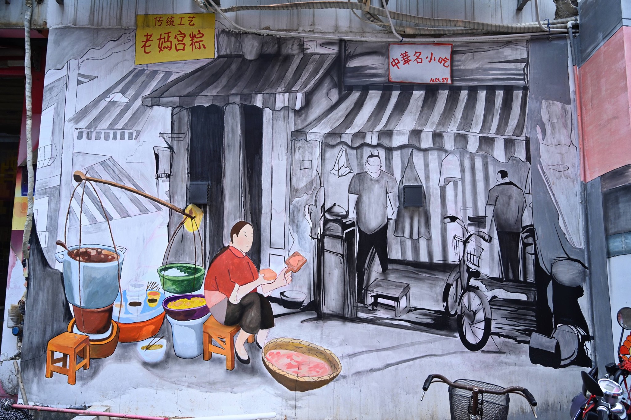 As paredes de muitos prédios em um parque de cultura inovadora da Região Autônoma da Etnia Zhuang de Guangxi foram pintadas ou grafitadas. Qual a sua favorita?