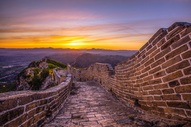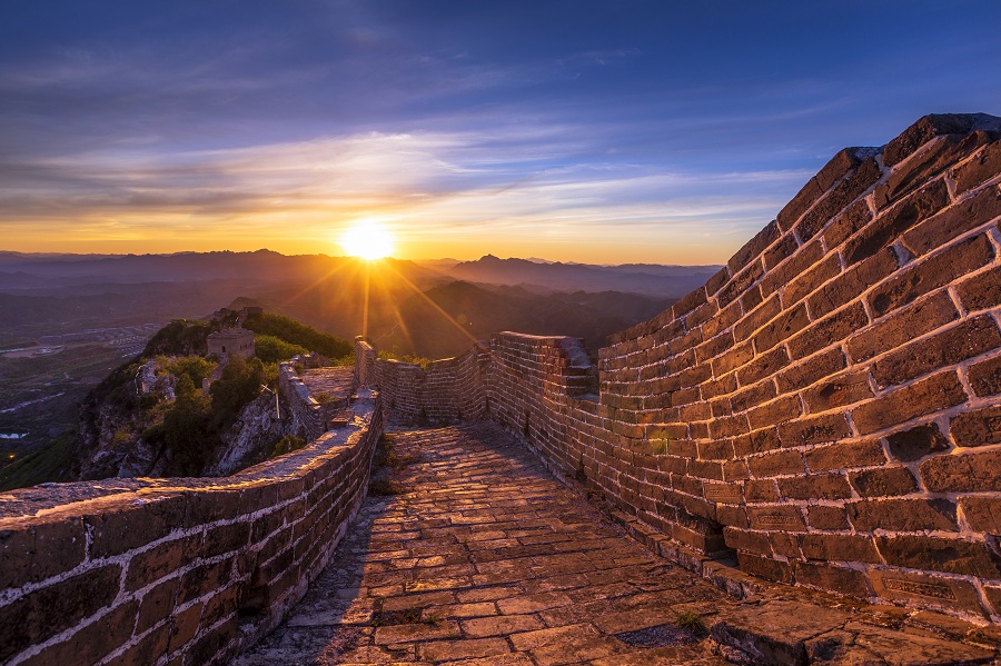 Cenário pitoresco do pôr do sol na Grande Muralha de Simatai em Beijing