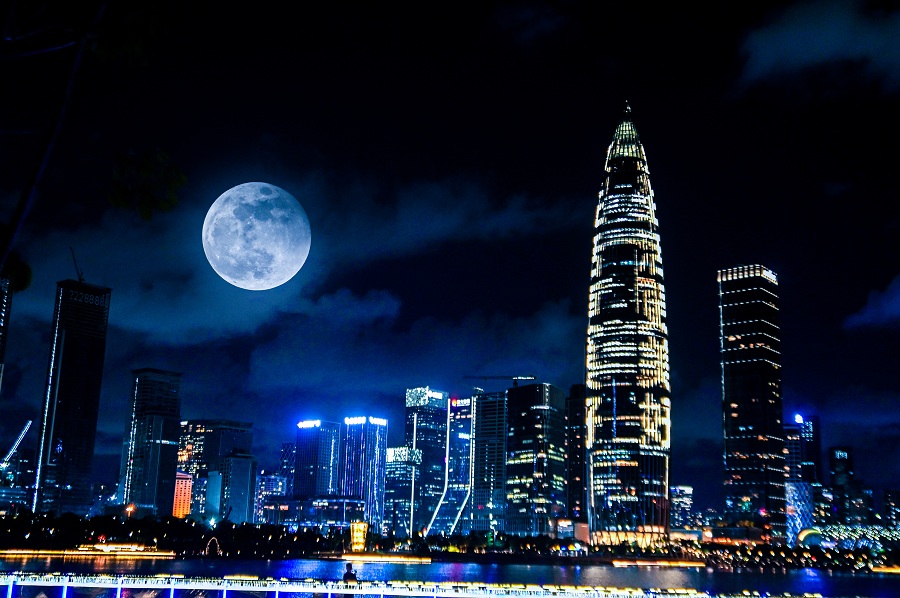 Eclipse lunar e superlua observados em toda a China