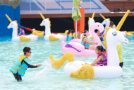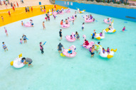 Pessoas se divertem em um parque aquático em Xiangyang, na província de Hubei, no centro da China.