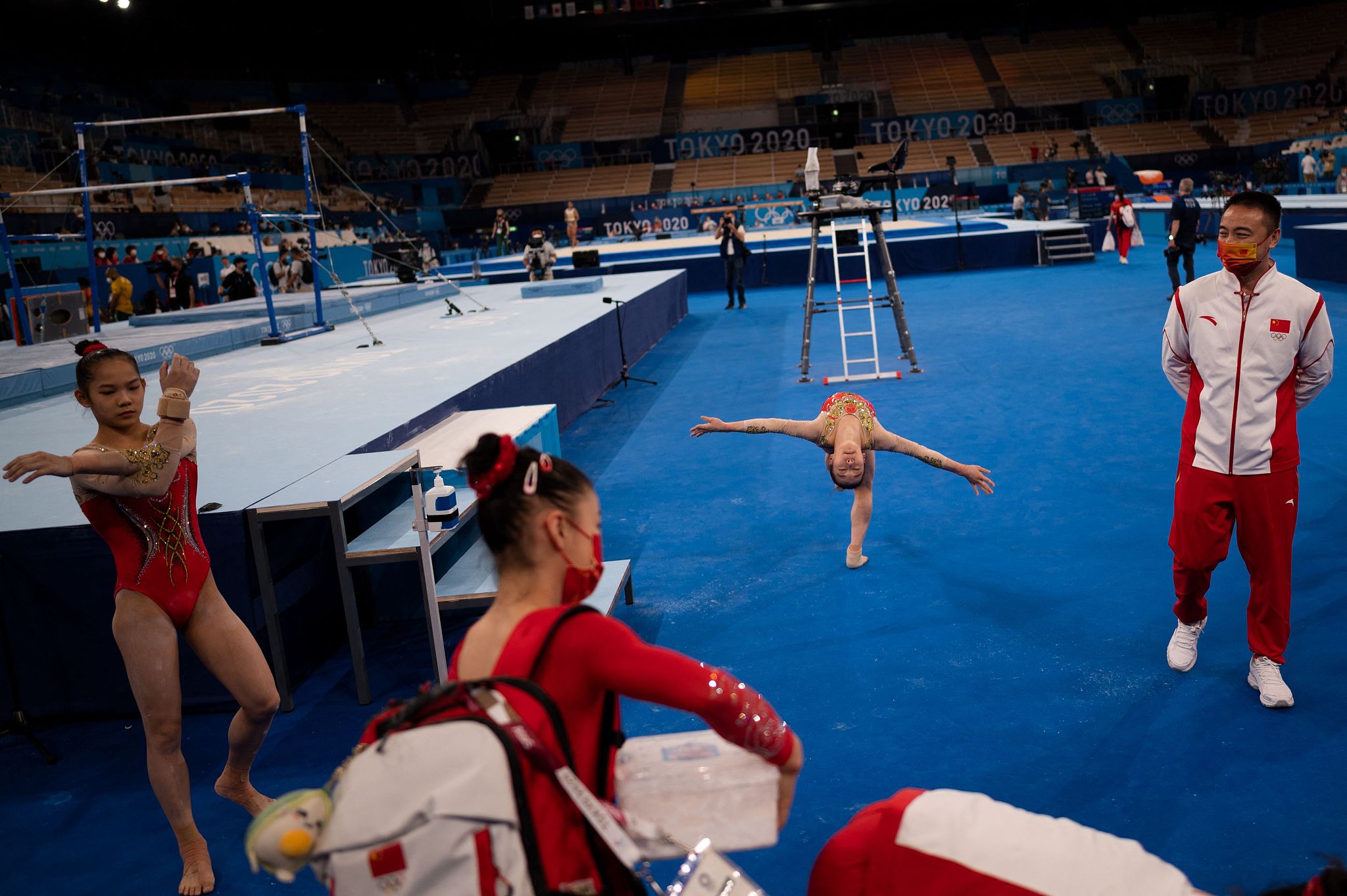 Ginastas chineses participam de treinamento em Tóquio