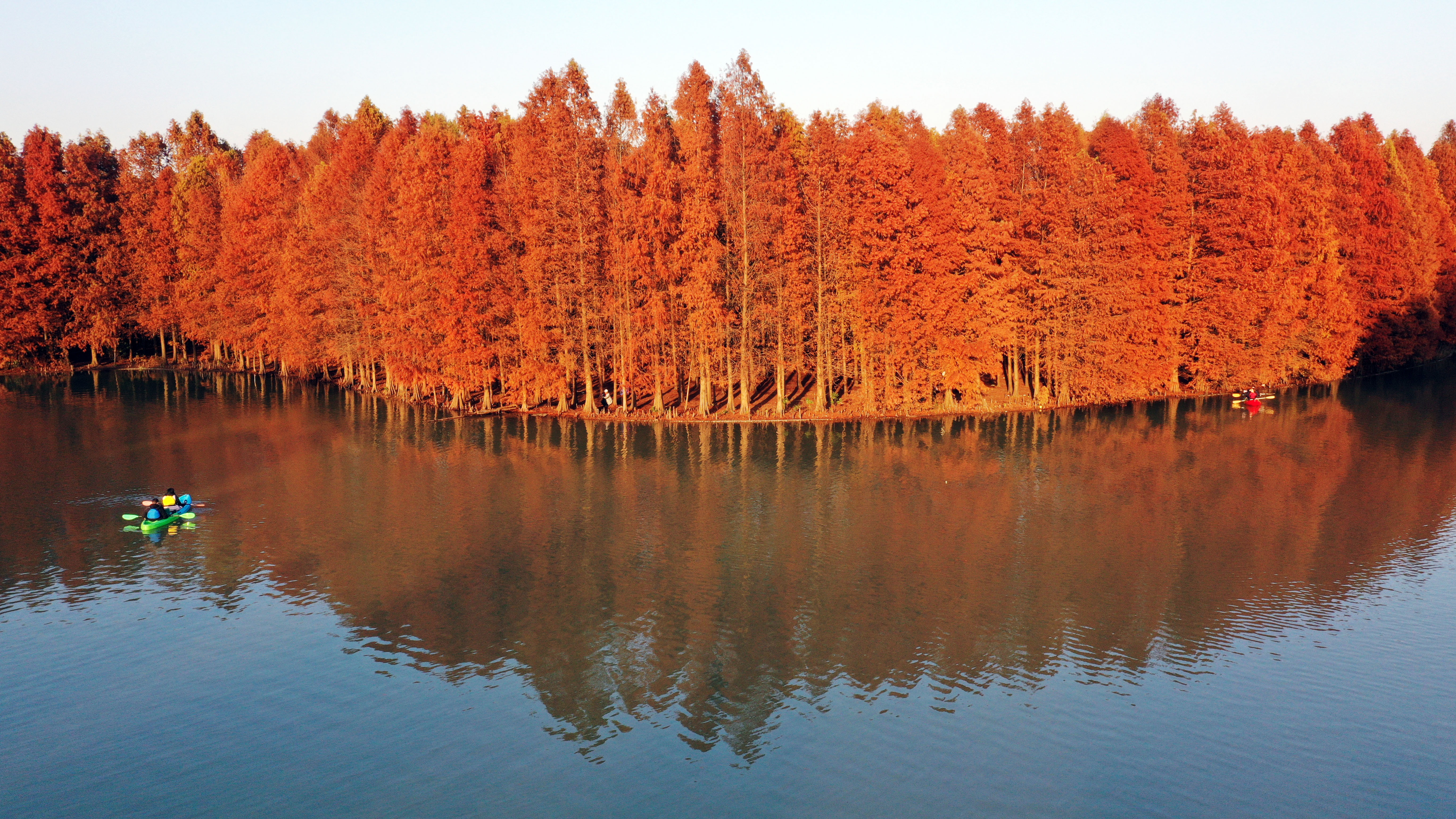 É hora de apreciar a floresta de sequóias! O Parque Florestal Nacional de Haiwan está localizado no distrito Fengxian de Shanghai. Com a chegada do inverno, as árvores estão vestidas com belas cores.