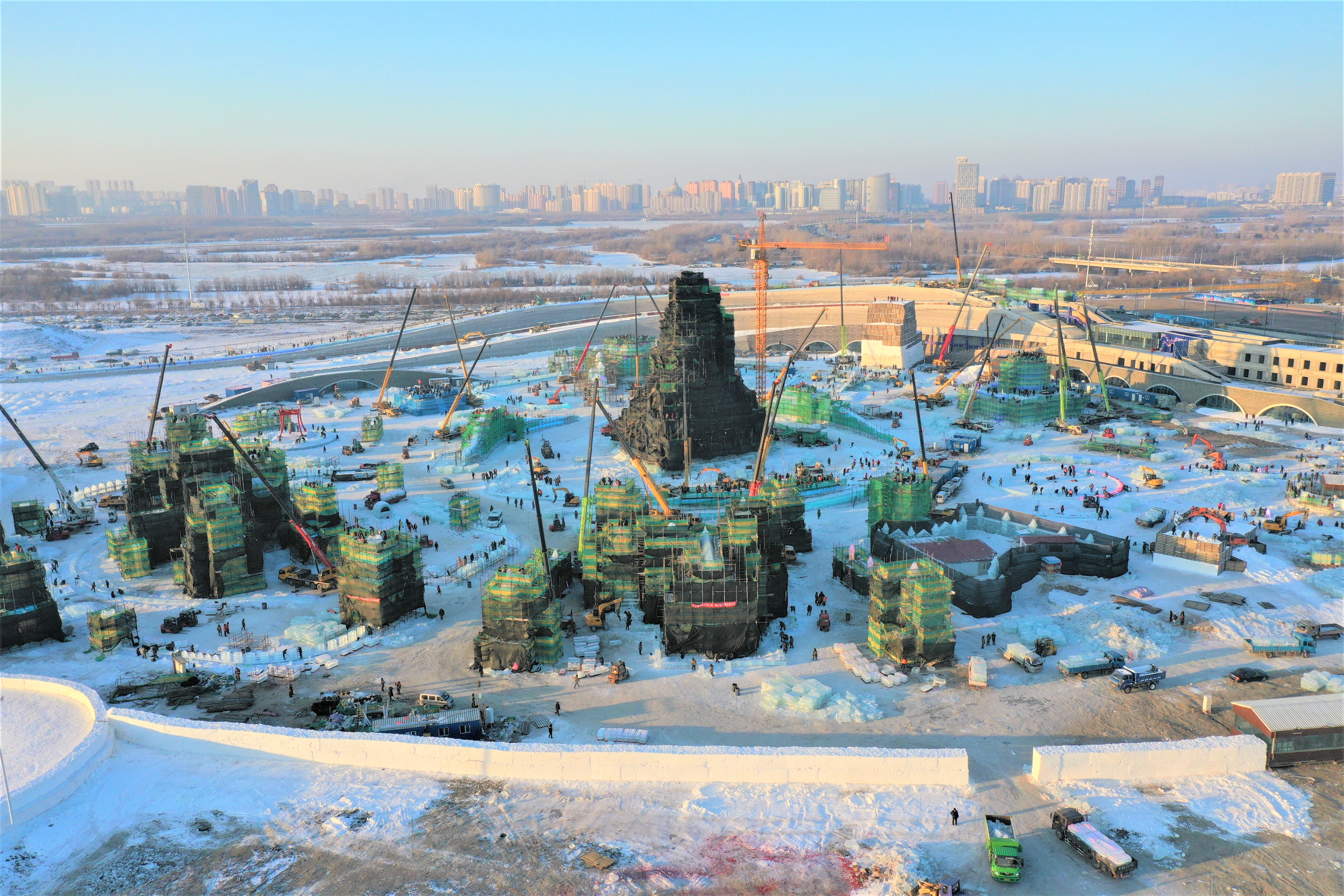 Construção do parque Mundo de Gelo e Neve em Harbin