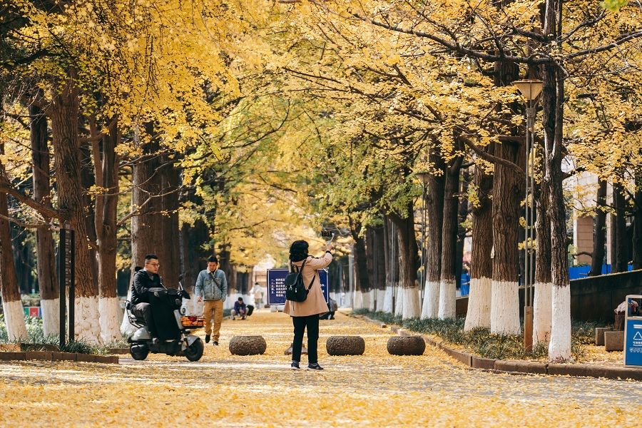 Folhas de ginkgo decoram Universidade de Yunnan