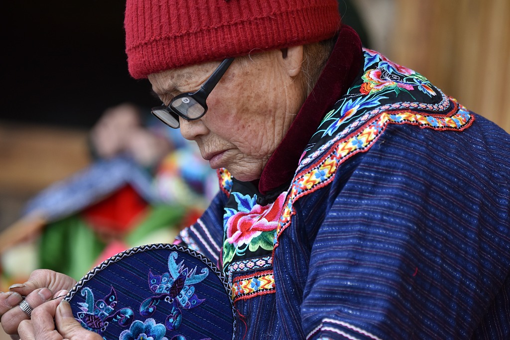 Durante o inverno, as moradoras da vila Huatian da etnia Miao, em Chongqing, sempre ficam entediadas em casa por terem pouco trabalho no campo e menos turistas na vila. Este ano, o governo local estabeleceu uma oficina de bordado de estilo Miao para quem quiser aprender a técnica local. Os artesanatos que as mulheres fazem, tais como leques e pinturas de bordado, podem ser vendidos na loja de comércio eletrônico criada pelo governo local. Com isso, elas conseguem uma renda extra no tempo livre, e essa é também uma boa maneira para divulgar a cultura tradicional de bordados da etnia Miao.