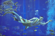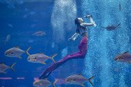 Espetáculo aquático de sereias foi realizado em Sanya