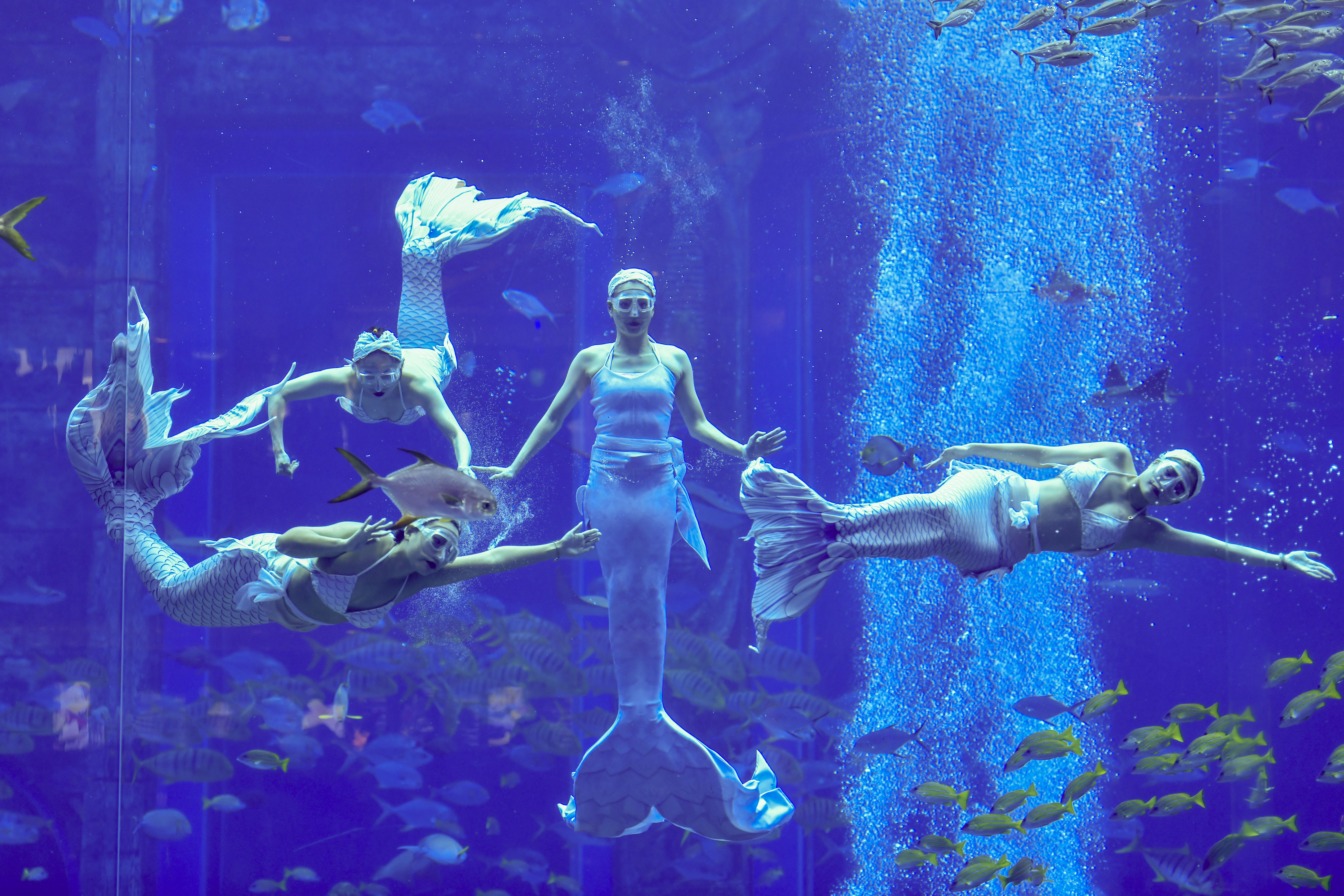 Um espetáculo aquático de sereias foi realizado na cidade de Sanya, no sul da China. A apresentação contou com um elenco de 41 artistas com apresentações impressionantes.
