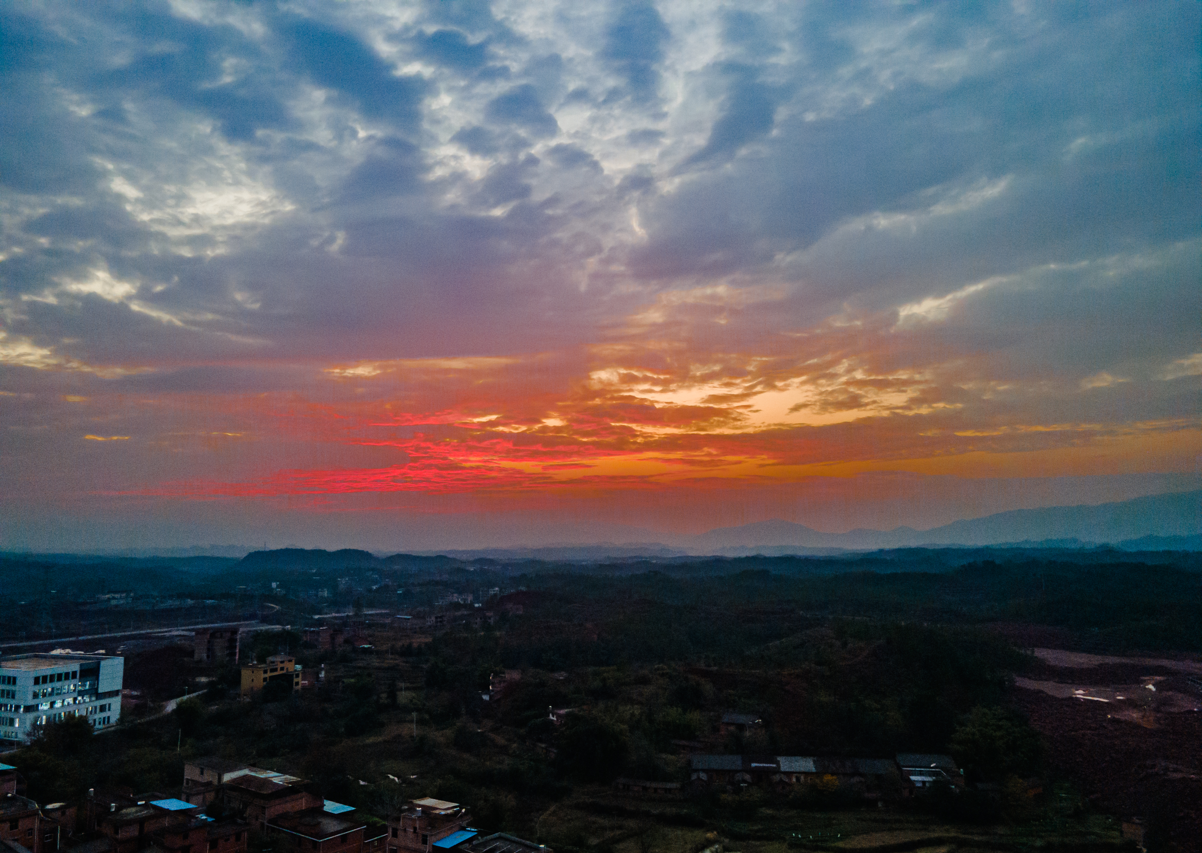 Linda paisagem ao pôr do sol de em Ganzhou, província de Jiangxi