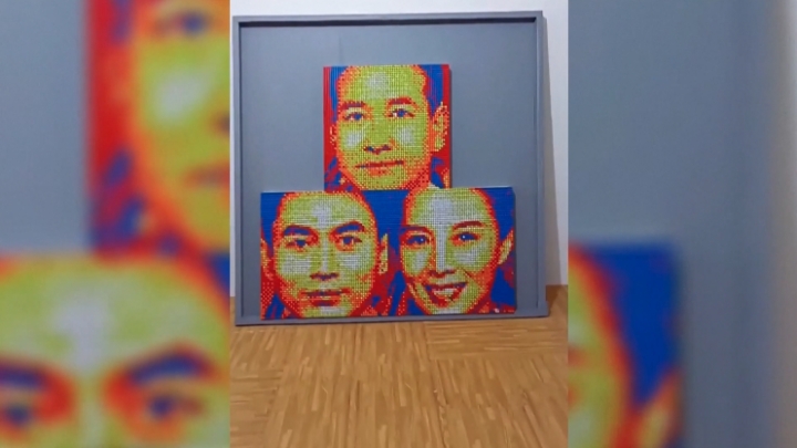 Moço chinês junta imagens dos astronautas da Shenzhou-13 com 1.200 cubos mágicos