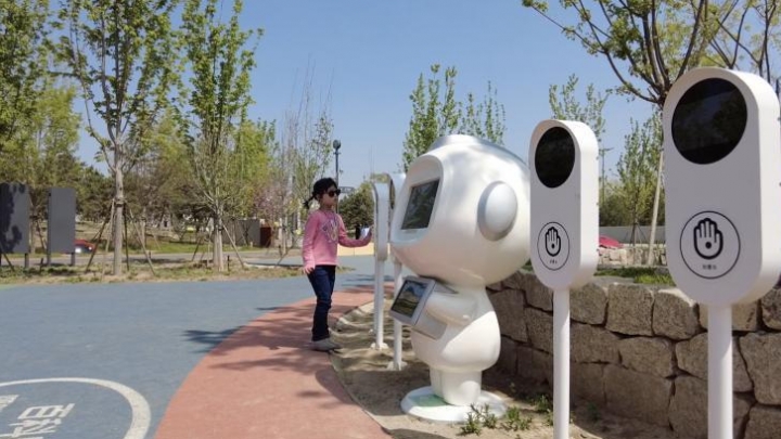 Passeio pelo parque sobre neutralidade de carbono em Beijing