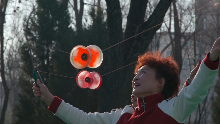 Jogar diabolô, um esporte que exige coordenação de várias partes do corpo