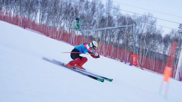 Entusiasmo da equipe paralímpica do esqui alpino da China