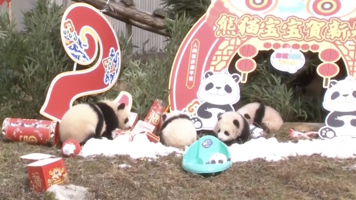 Bebês pandas felicitam Ano Novo Chinês e Olimpíadas de Inverno