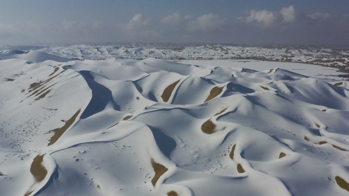 Xinjiang: Uma rara nevasca faz deserto um mundo de conto infantil
