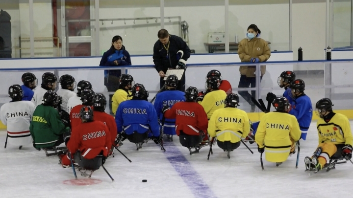 Treinamento diário dos atletas de hóquei dos Jogos Paralímpicos de Inverno de Beijing